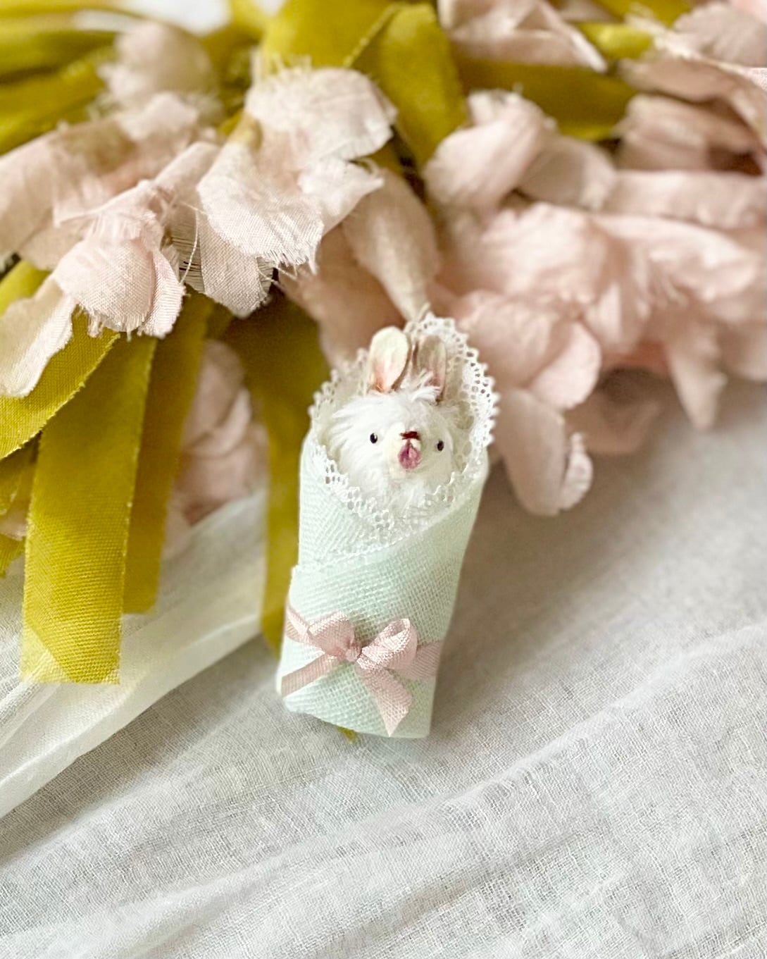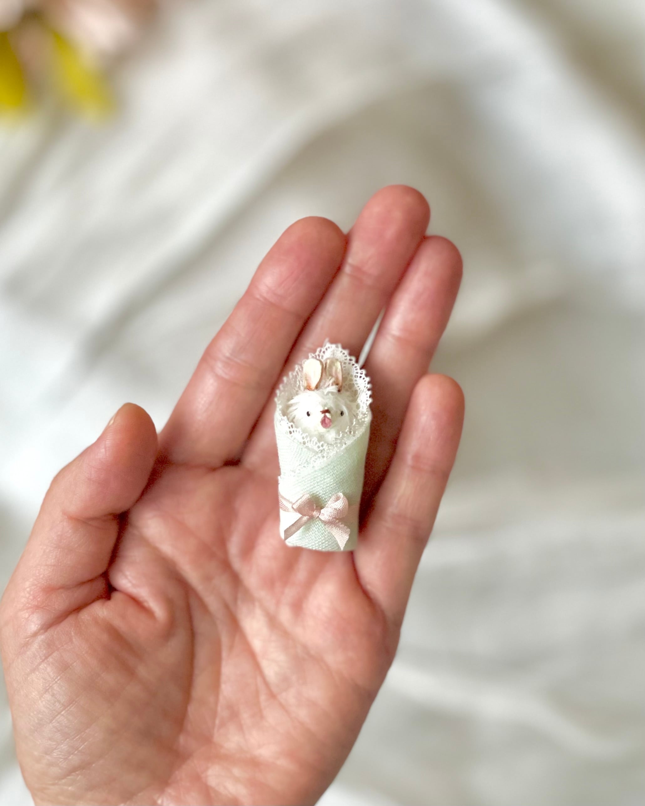 とても小さなうさぎの赤ちゃんとおくるみのセット。