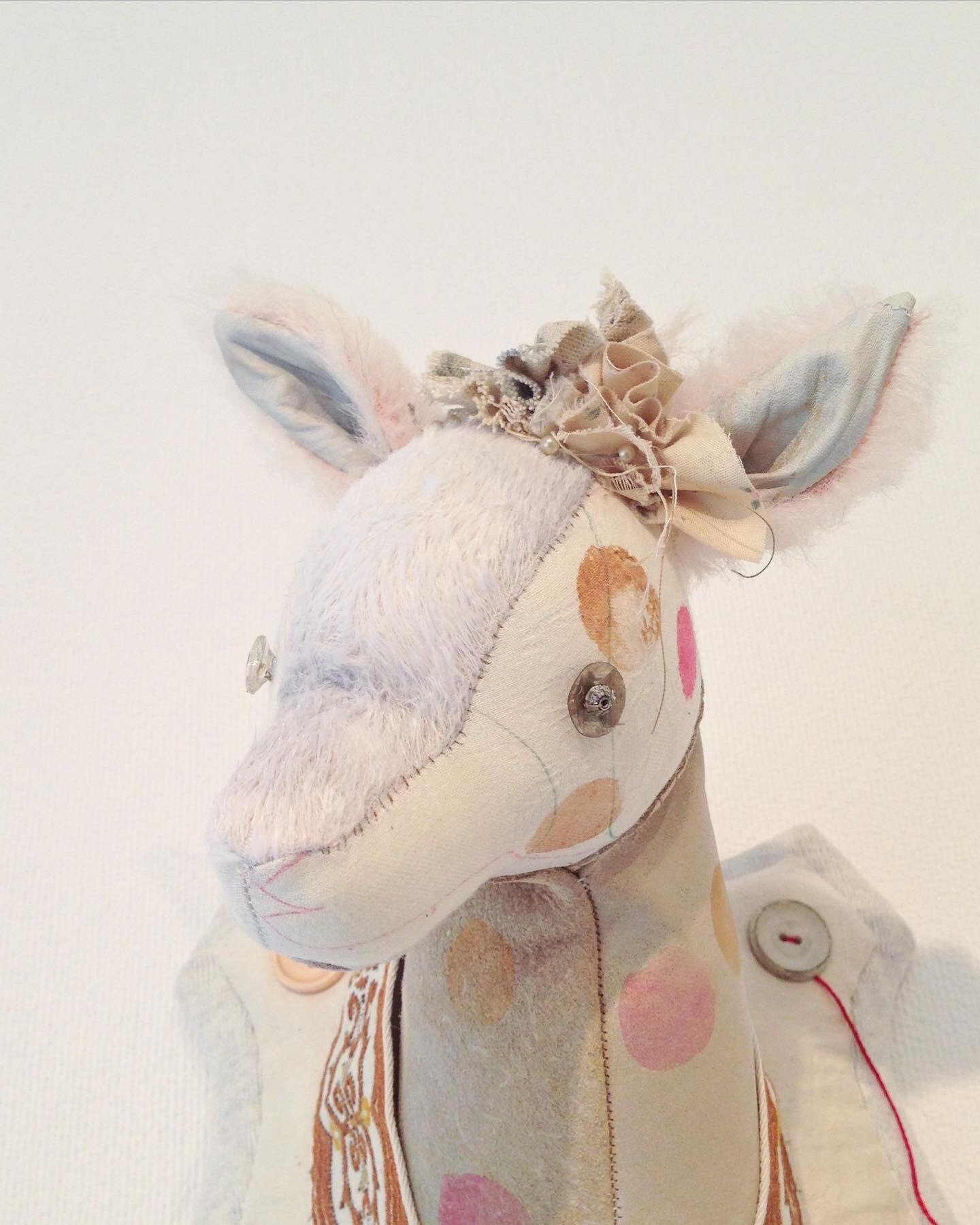 素材:ハードボード、シーチング、ビスコース、アクリルボア、ウールモヘア、羊革、豚革、チロリアンテープ、アンティーク釦、化繊わた、ほか