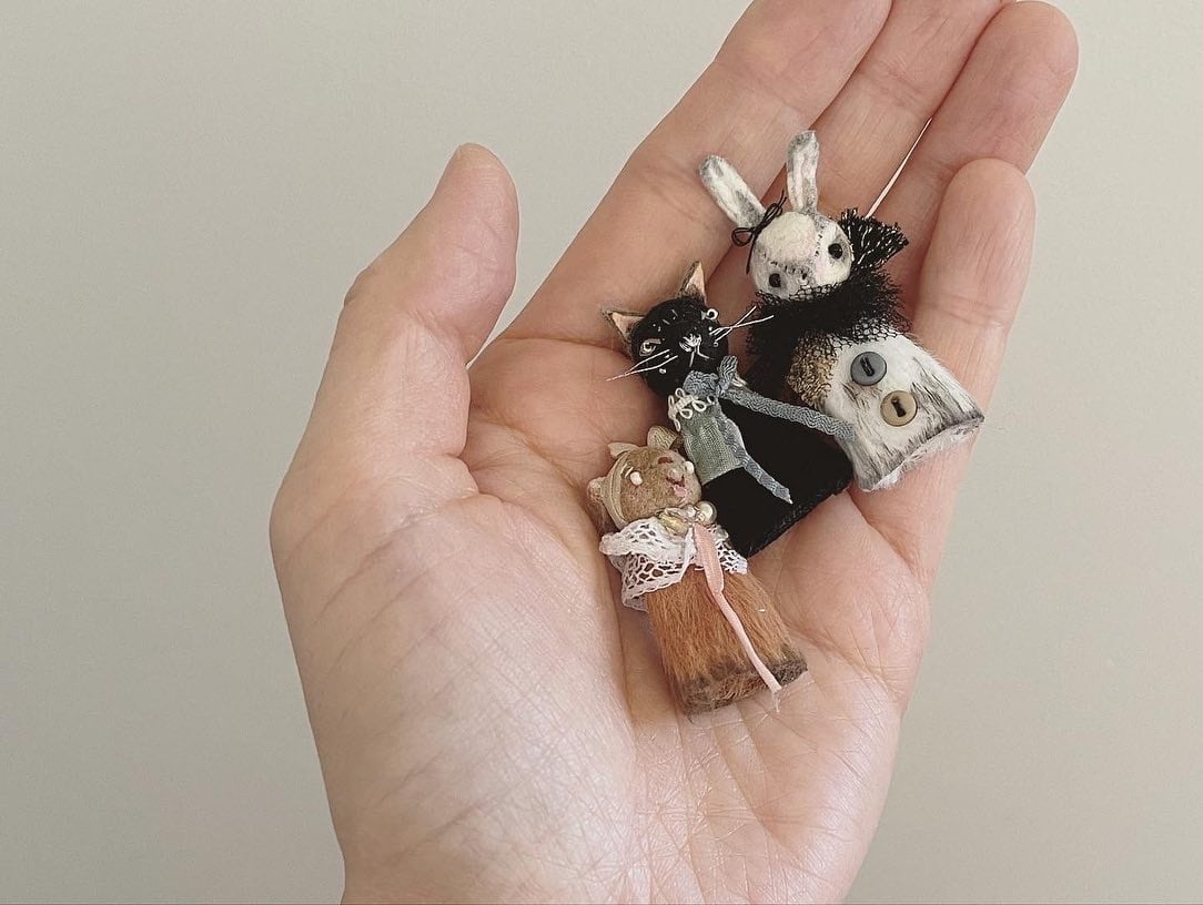 ミニチュアのアクセサリーのような小さなパペットを一つ作ることができる手縫いのキットです。
